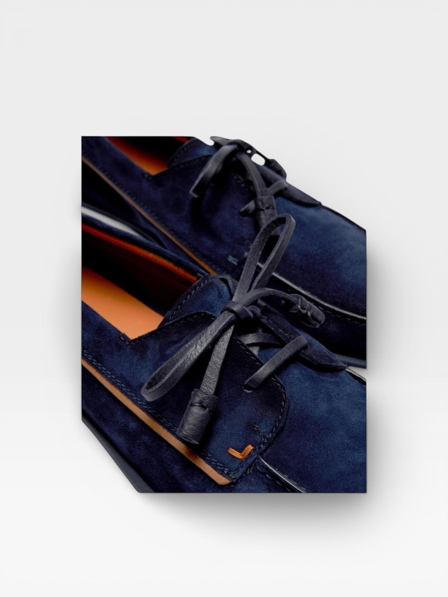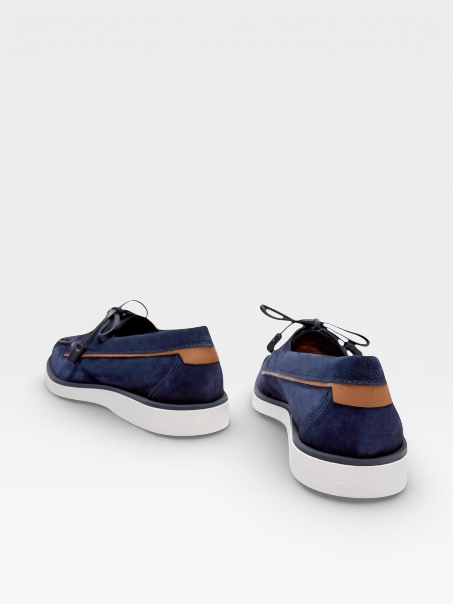 Oyster hybrid loafer for men from Santoni in navy and sand. The model model impresses thanks to the high-quality, soft suede finish and the casual casual rubber sole, this model impresses with its elegant look and high level of comfort, while the characteristic topstitching and lacing skilfully complete the masculine look. skilfully complete the masculine look.
