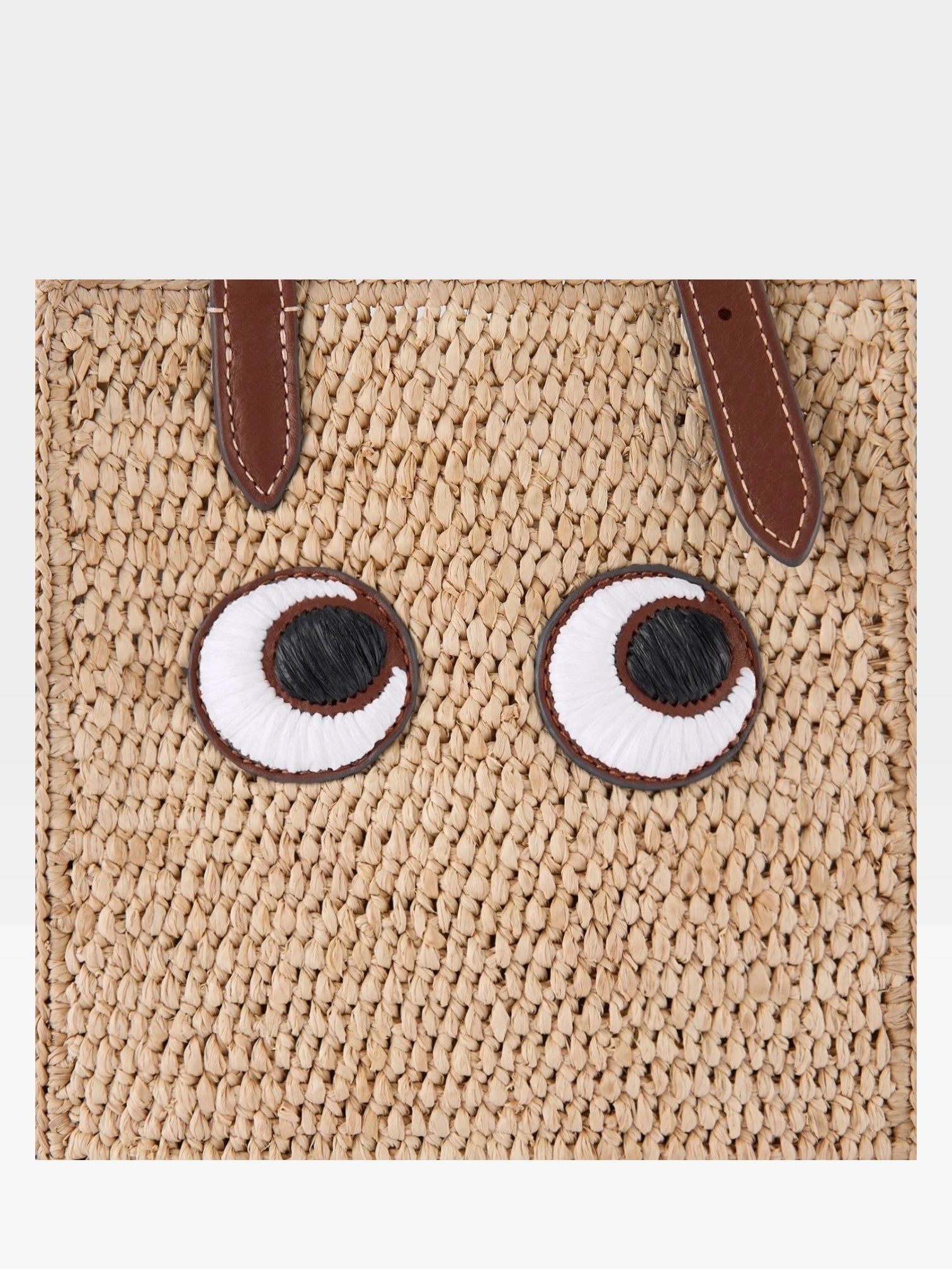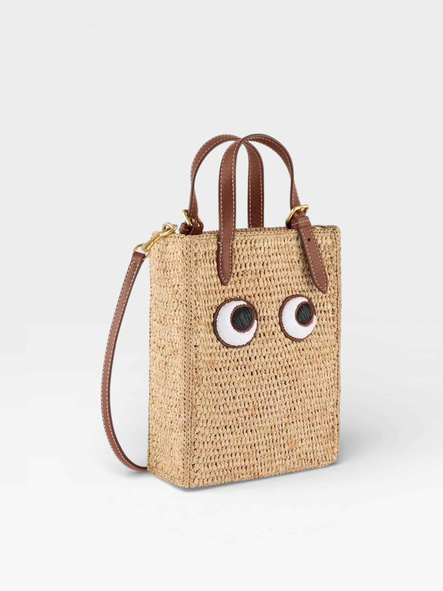 On summer days, swap your everyday bag for this playful basket. Our N/S Mini Tote has been reworked in natural raffia and appliquéd with our Eyes motif. Style it crossbody by the eco-leather strap.