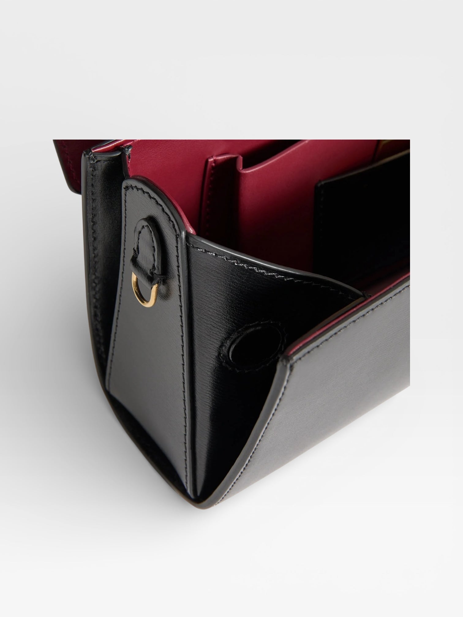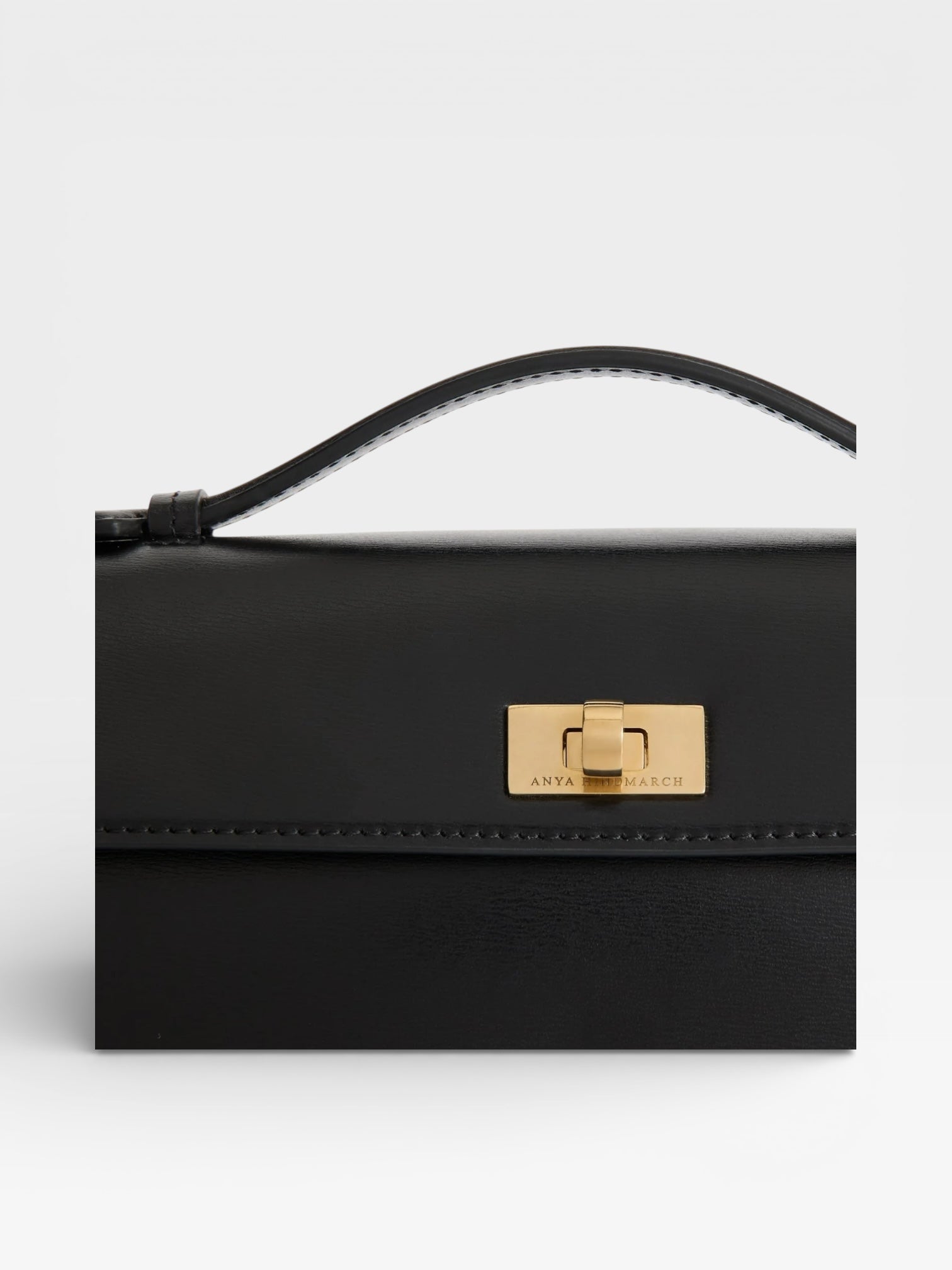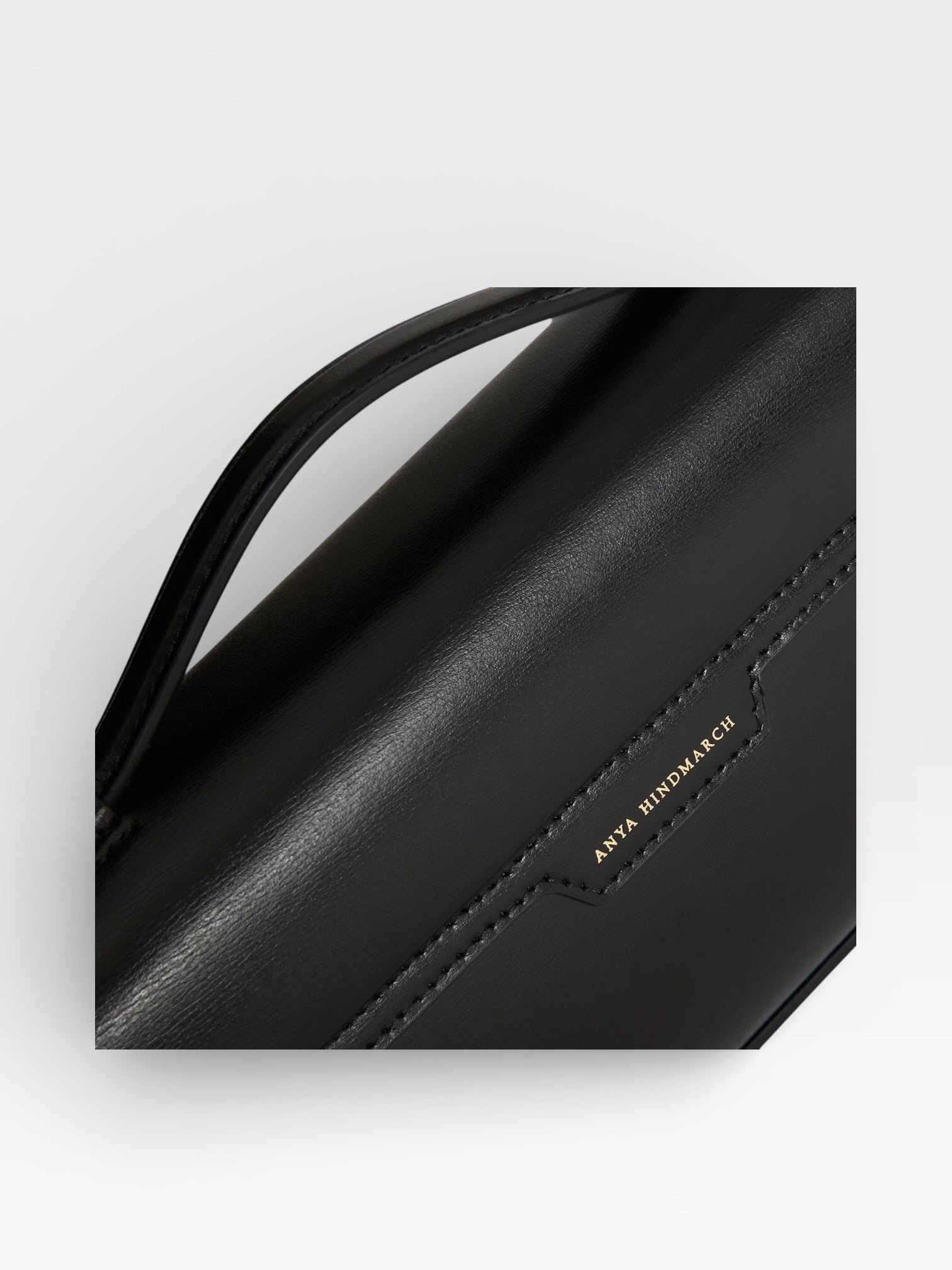 The Mortimer Clutch is the result of hours of handcraftsmanship. It is made in Florence from glossy, black, box-calf leather that has a gold rating from the Leather Working Group – the highest certification a tannery can receive for environmental and social practices. The interior is lined in vampire-red satin leather and fitted with a pocket for your phone, a smaller compartment for a lipstick, and a gold mirror – with its own labelled slot. Carry it as a clutch, by the top handle, or by the optional long strap.