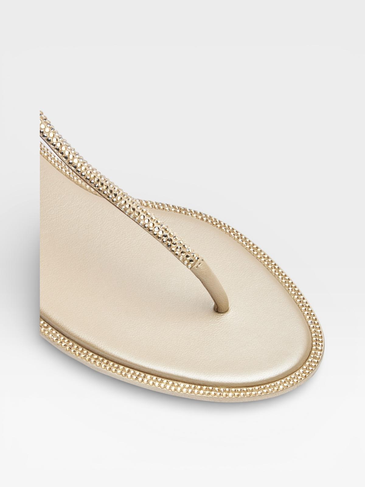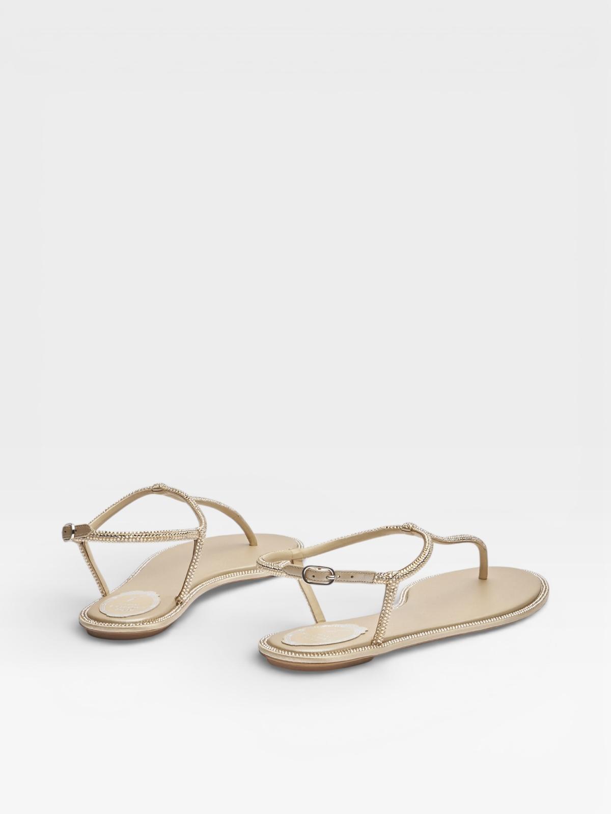 The barely-there allure of the Diana flat thong sandal in nude is elegantly versatile. Delineated by sleek lines, this summery design is characterized by fine straps that are delicately encrusted with tonal baby crystals for a gentle shimmer.