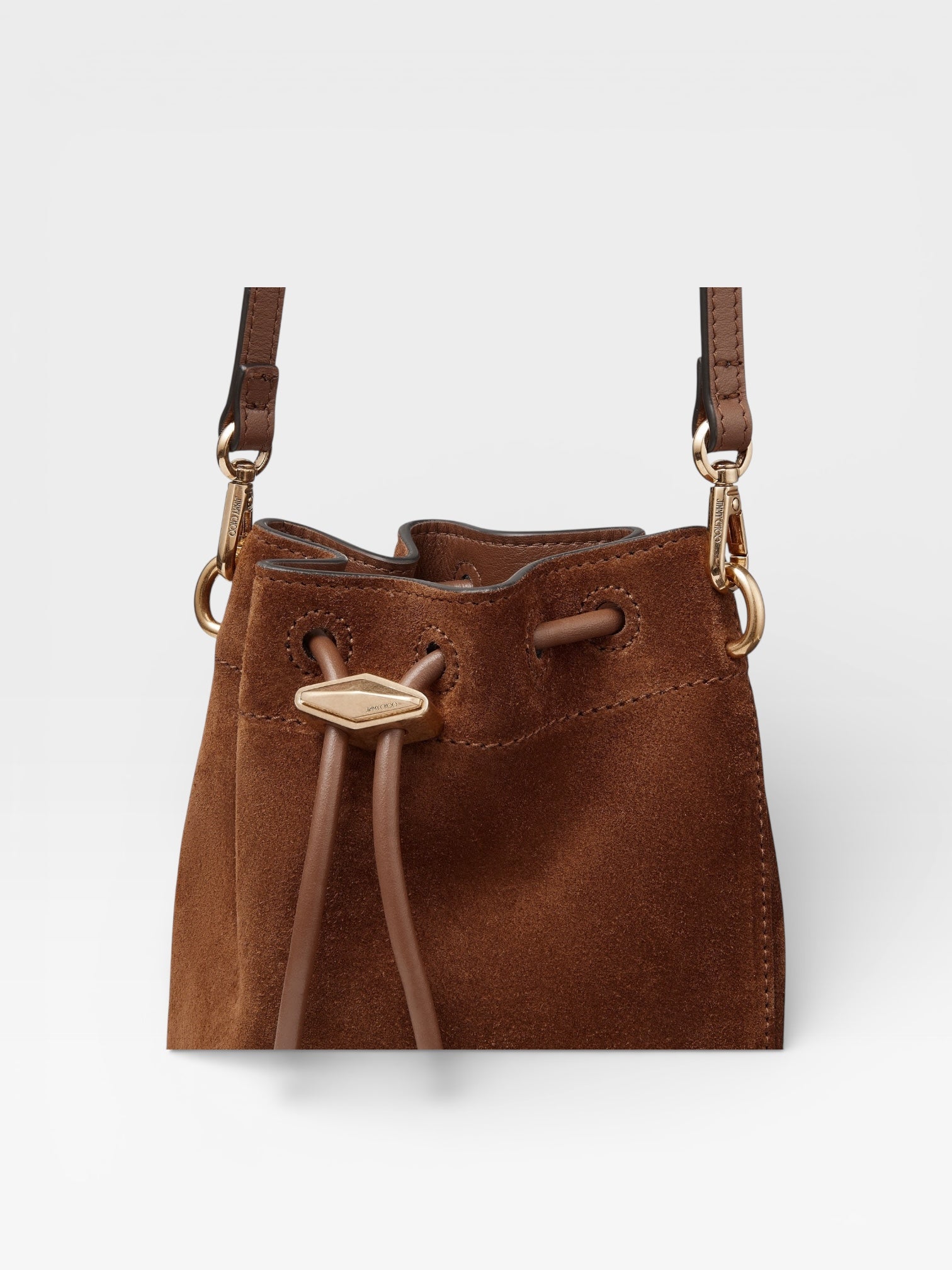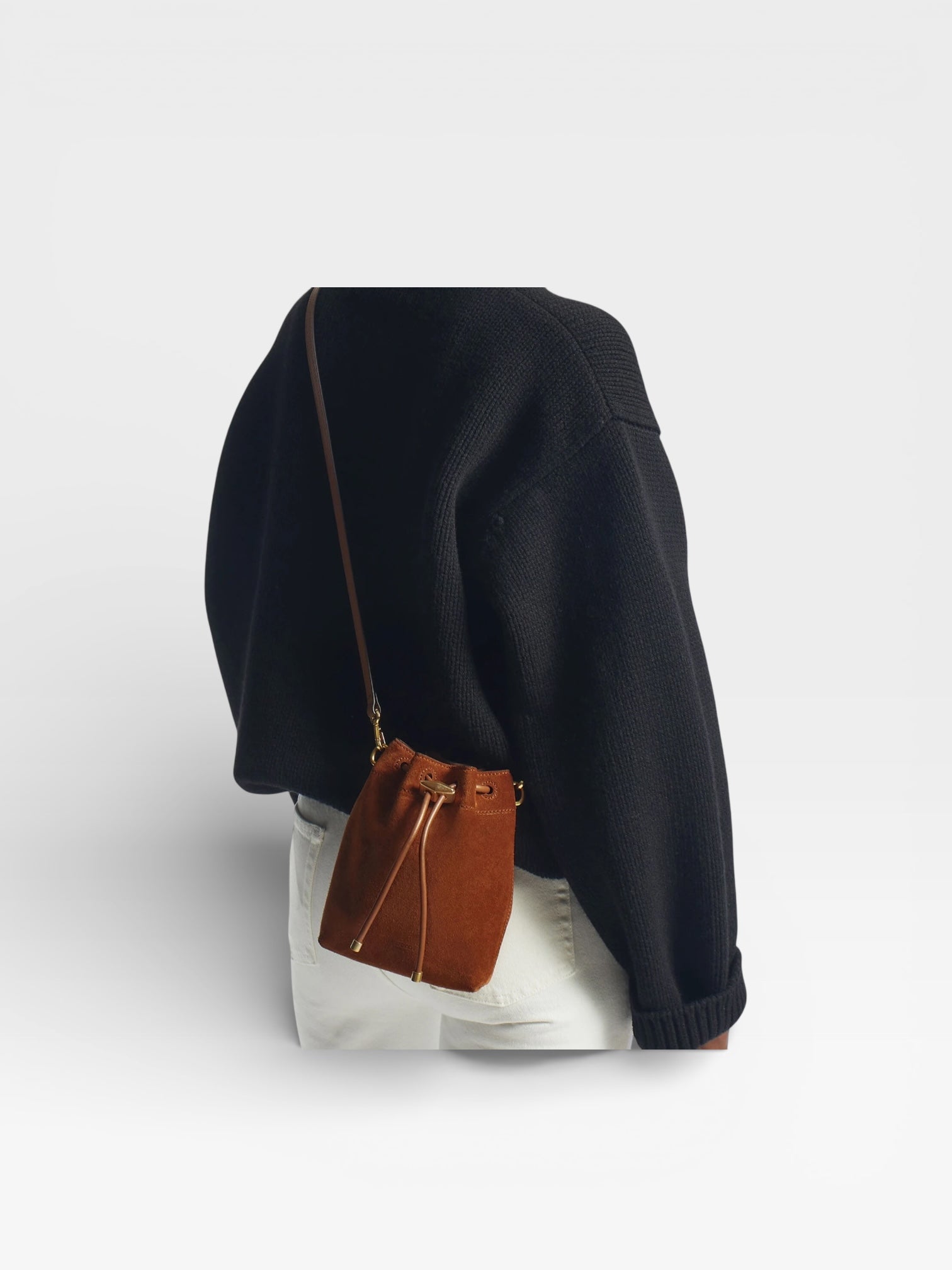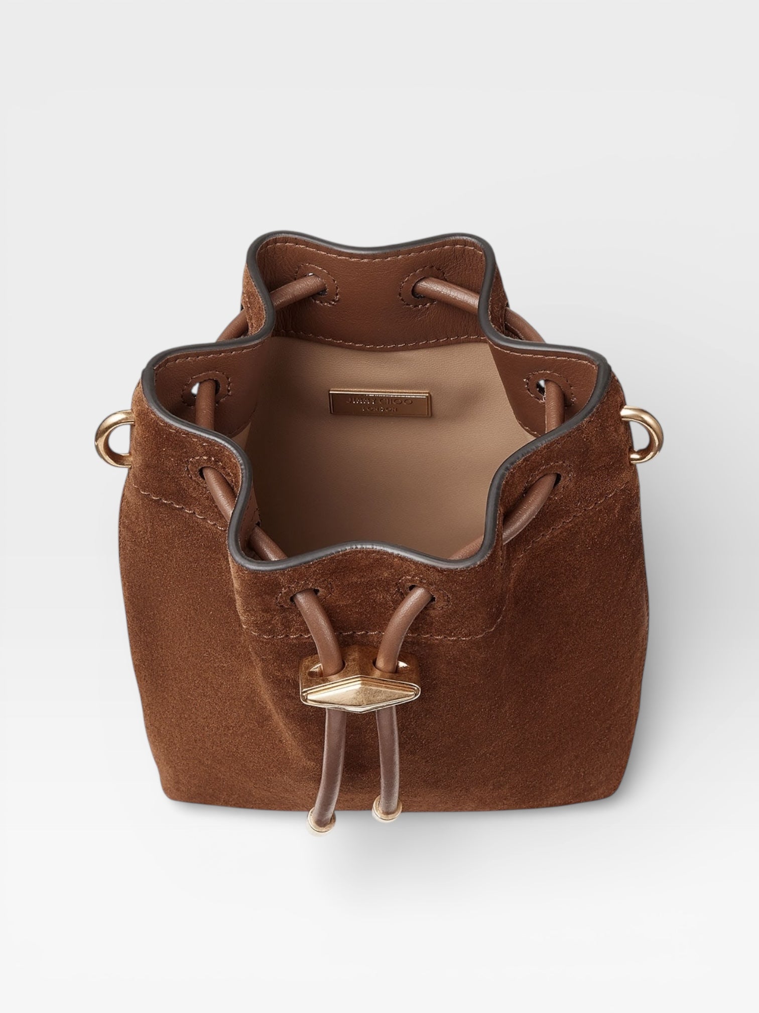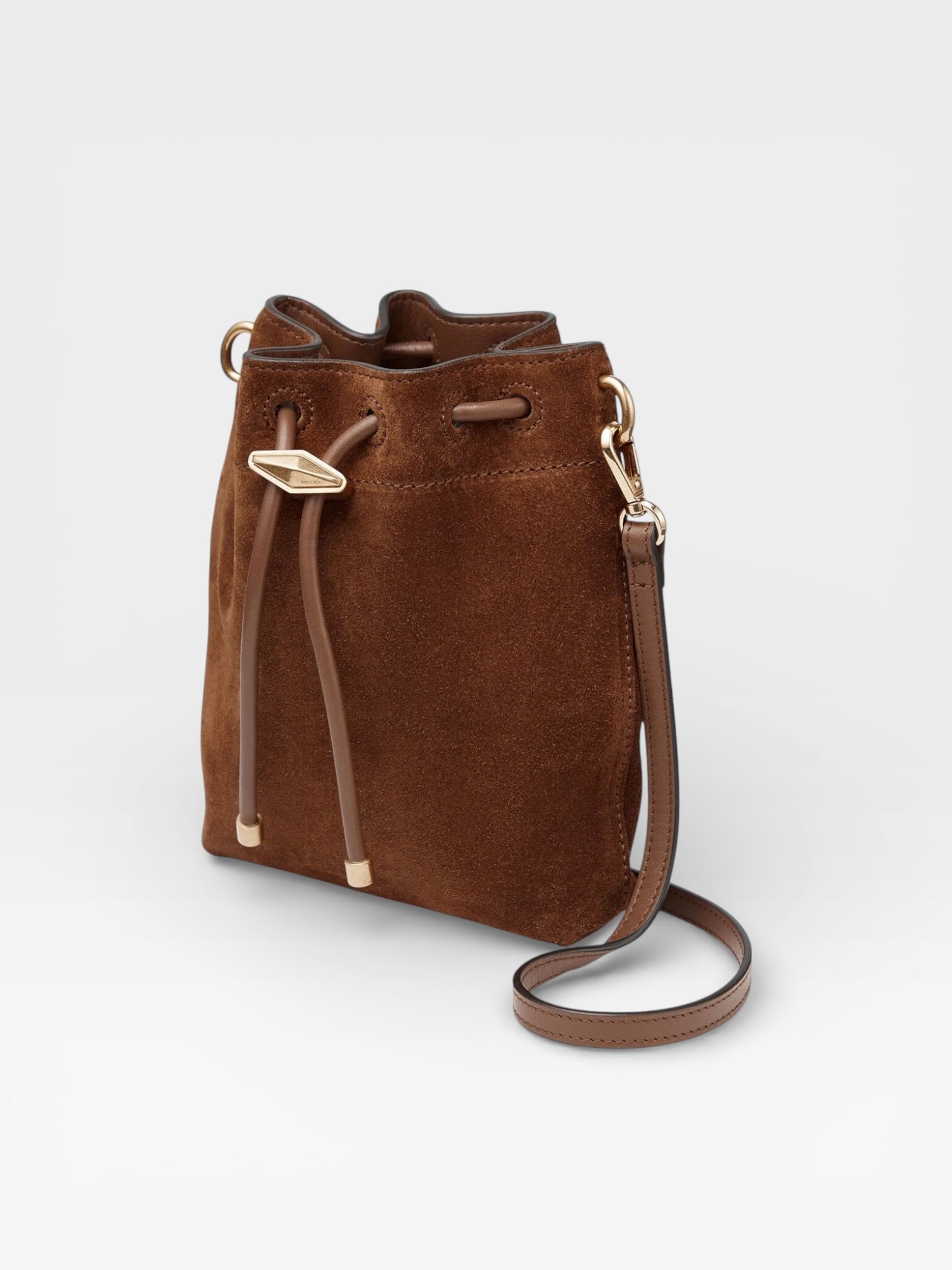 Inspired by contrasts – the Cinch mini handbag is an evolutionary piece in our Bon Bon family defined by a soft and effortless silhouette that is cinched by a faceted Diamond drawstring closure. This definitive style is crafted from suede and is complemented by gold-tone hardware.