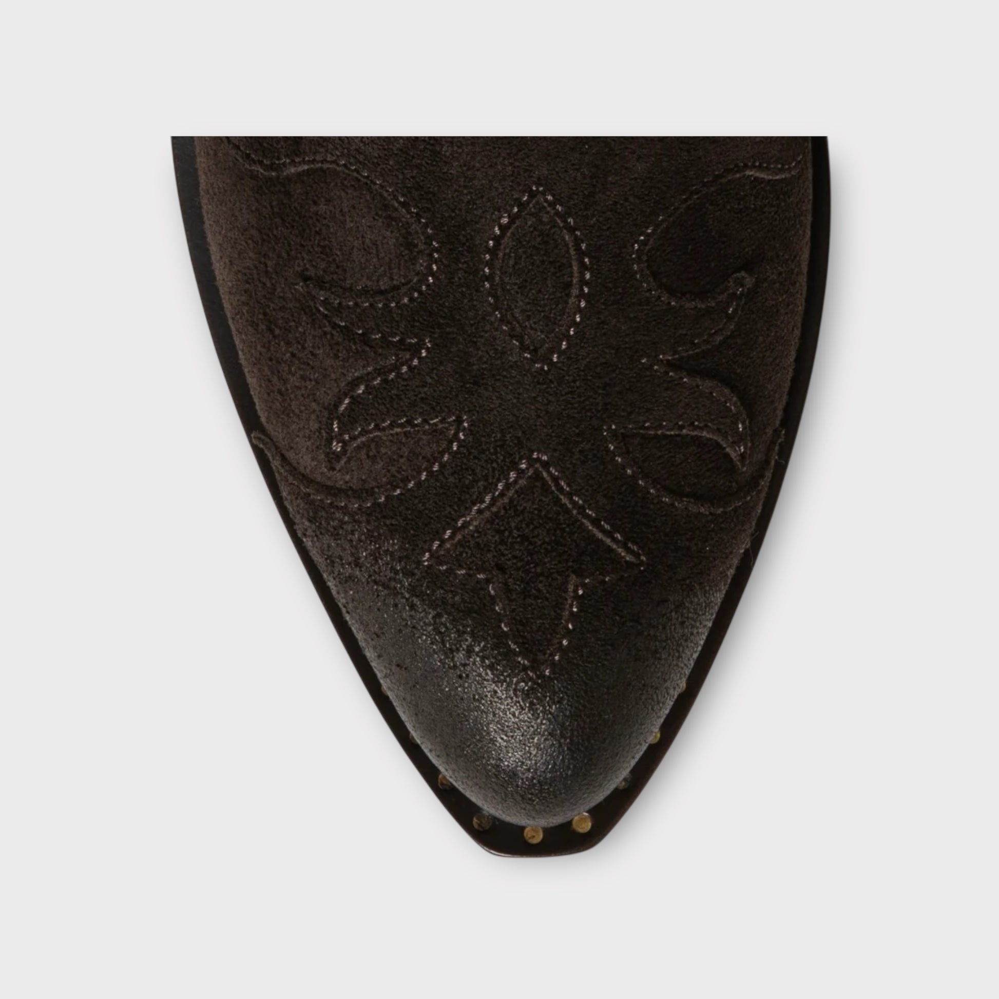 Western SARTORE Boots made in oiled velvet calf and decorated with flame cutouts. The lateral elastics offer you true comfort. Bevelled heel and leather sole.