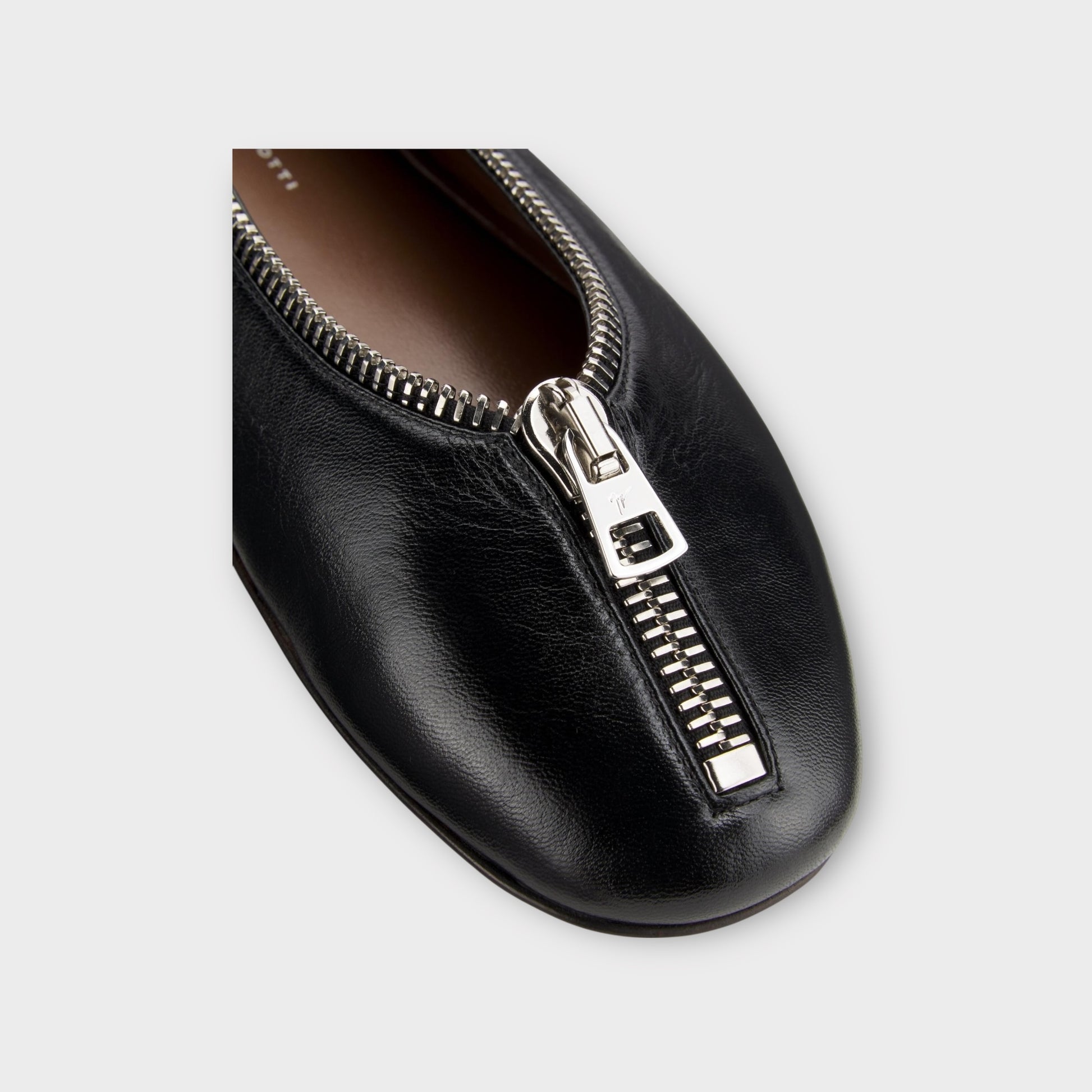 Giuseppe Zanotti's Amanda ballet flats are crafted of leather detailed with a zipper accent and trim. Made in Italy, these flats feature a leather sole for a comfortable stride.