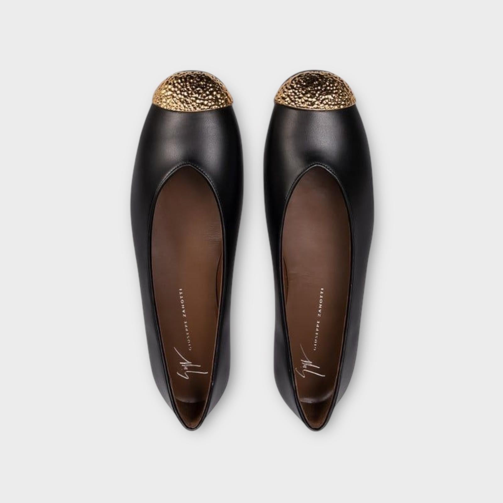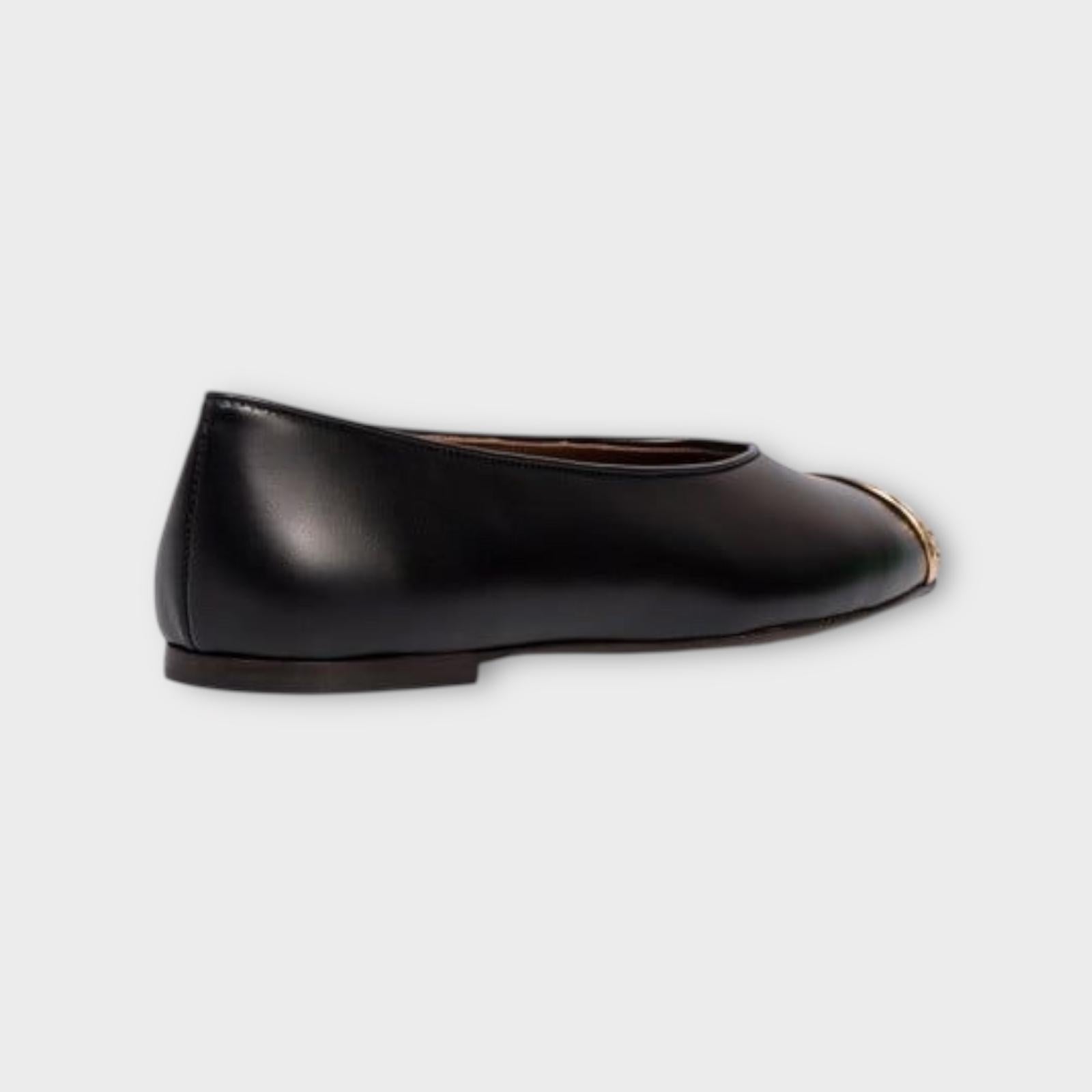 Leather ballerinas with hammered metal toe detail.