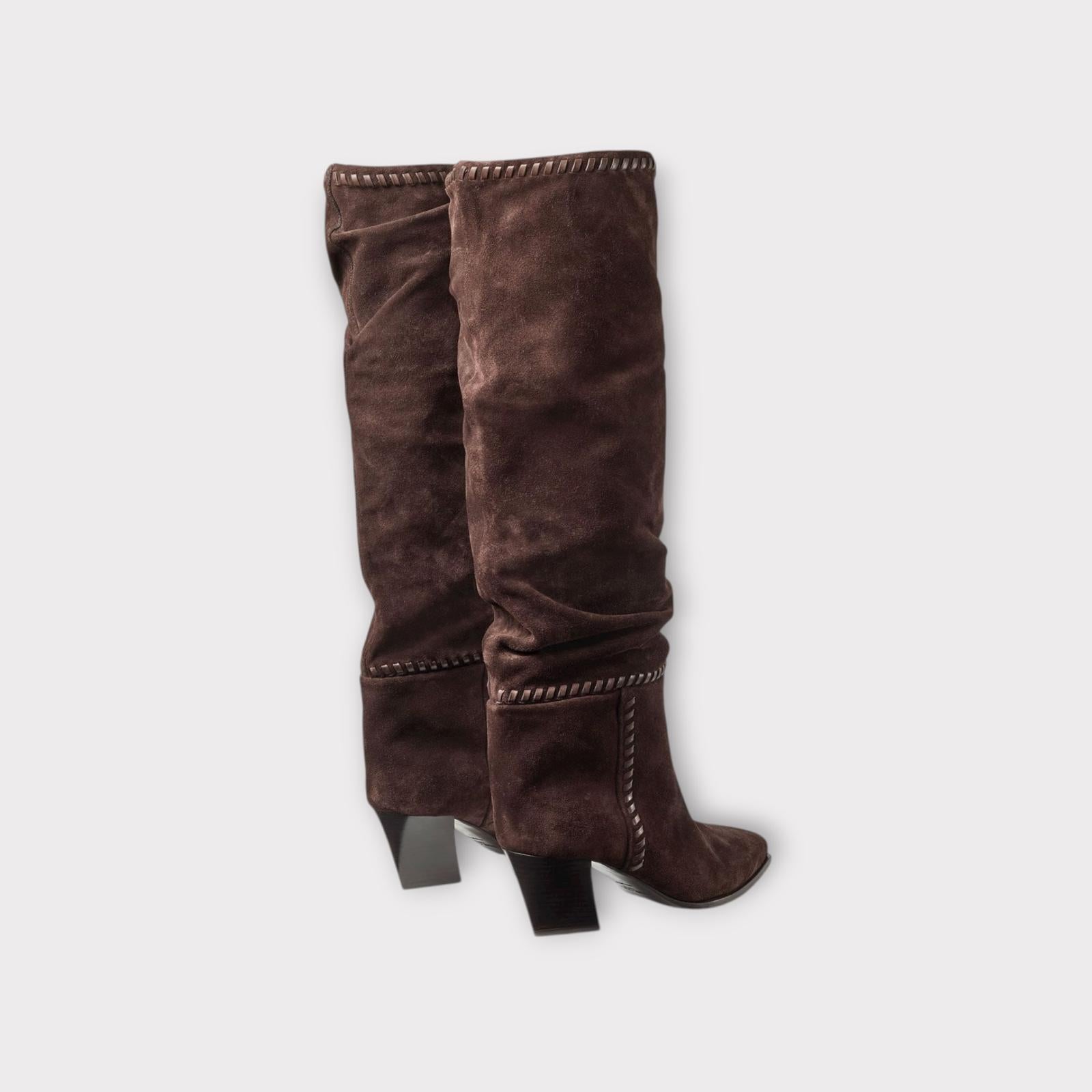 Jimmy Choo Boots Knee High Hart Stitch 60 Brown