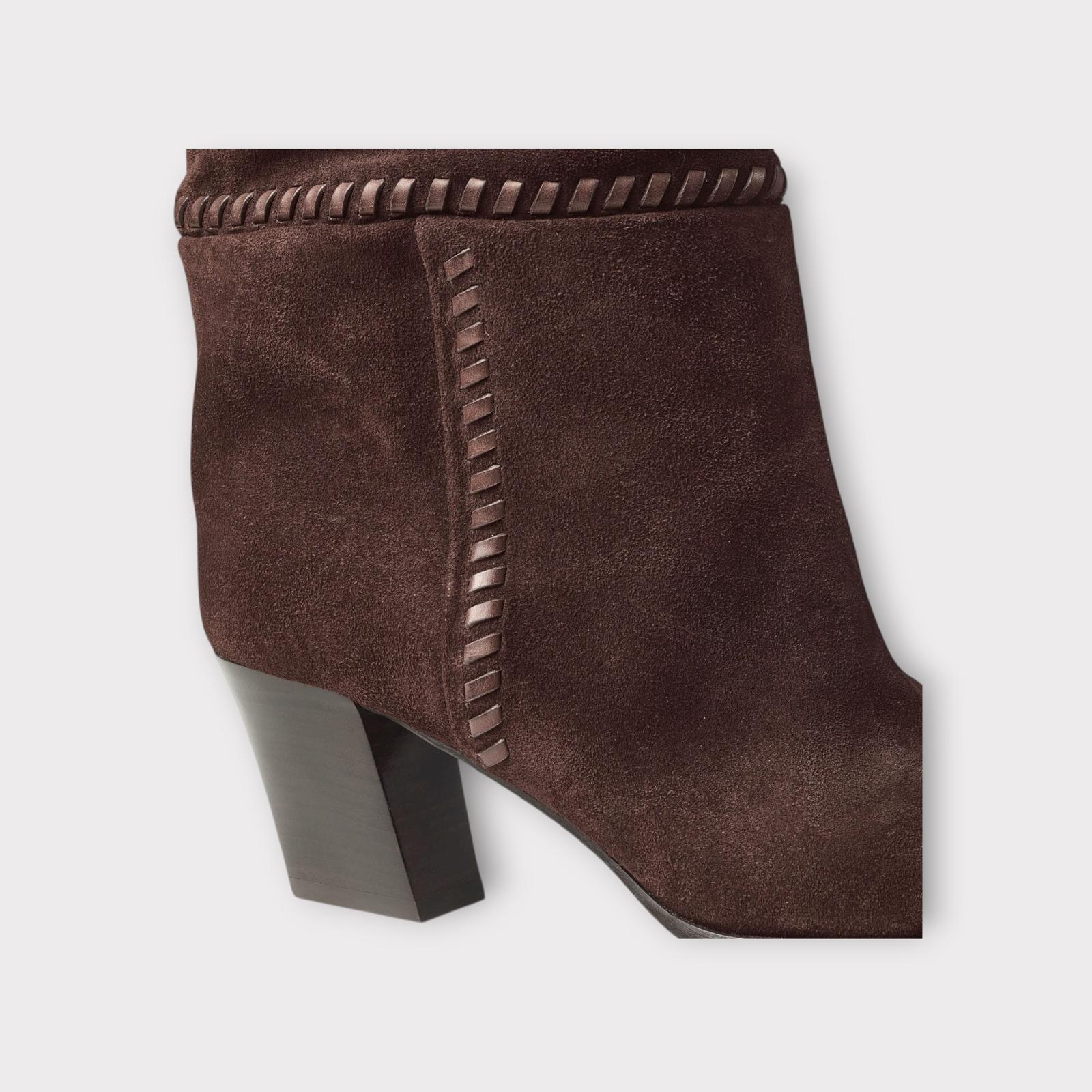 The Hart statement knee-high boot is characterised by a slouched silhouette. Crafted in supple suede, it is finished with whip stitching and a sculptural, oblique block heel defined by a faceted, triangular cut.