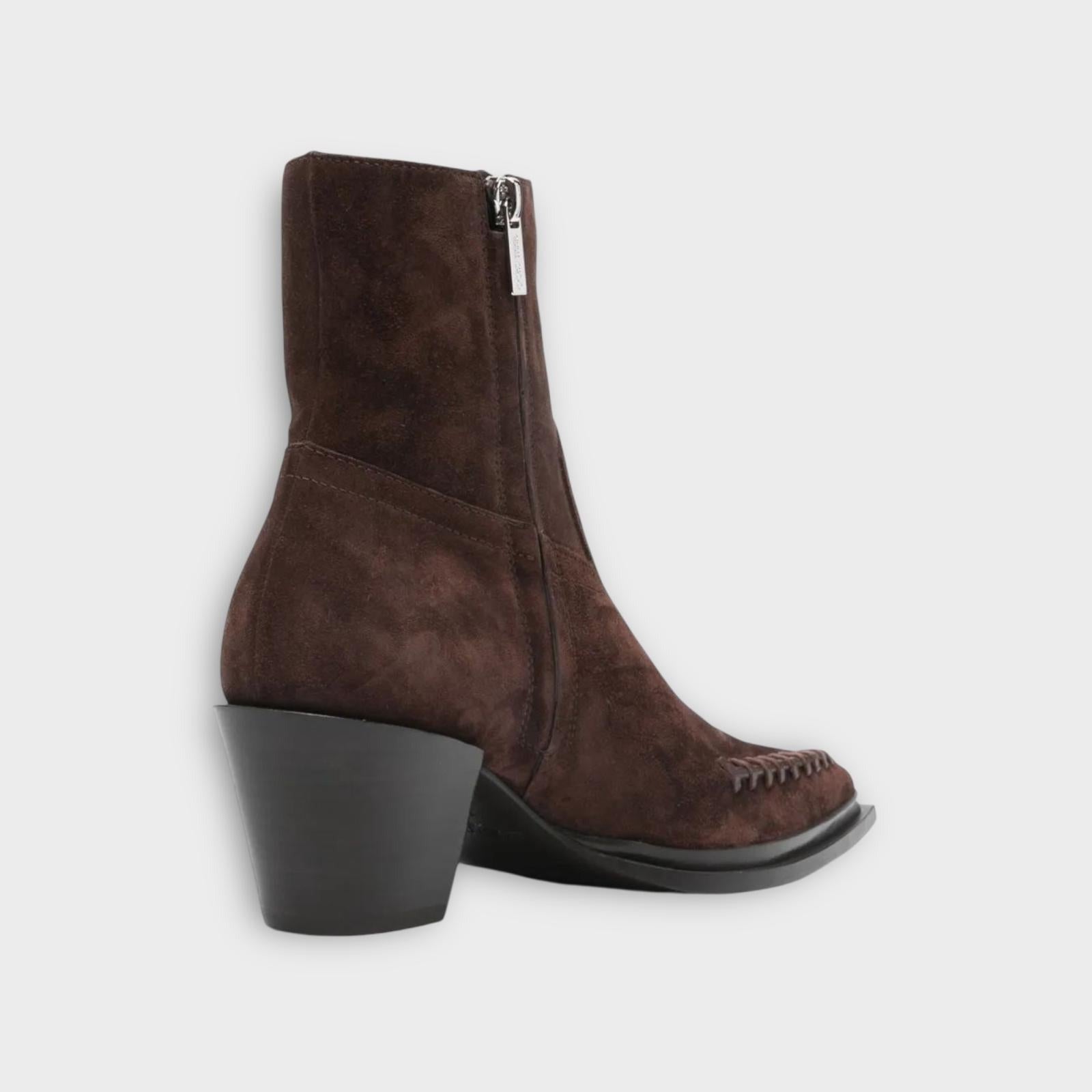 In suede leather, the Cece ankle boot elevates a timeless, equestrian-inspired silhouette. They are designed with a graphic block heel, pointed toe and sleek side zip.