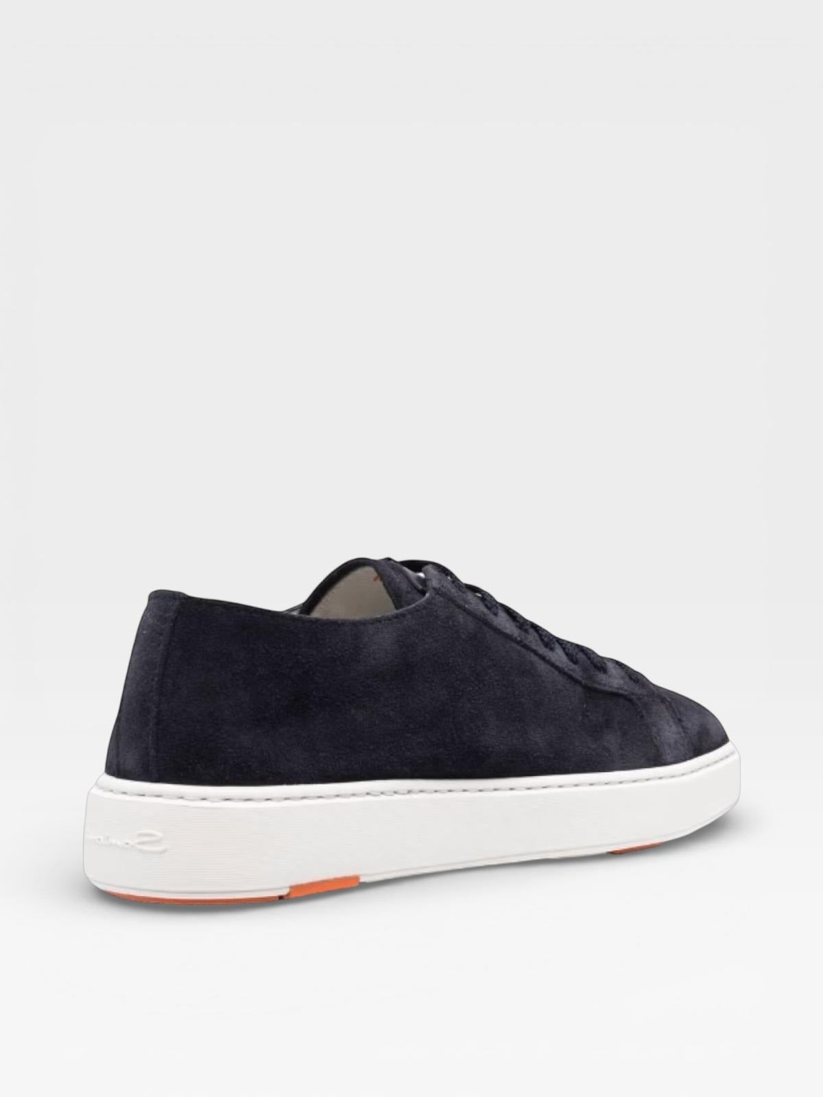 Style meets functionality, whilst sporty influences meet luxurious attitude. This Santoni men’s sneaker is crafted from luxurious tumbled suede, embellished with a small coloured stitch in celebration of our signature orange tone. Its wide-fit silhouette with round toe and flexible cupsole ensure maximum comfort from morning to night.