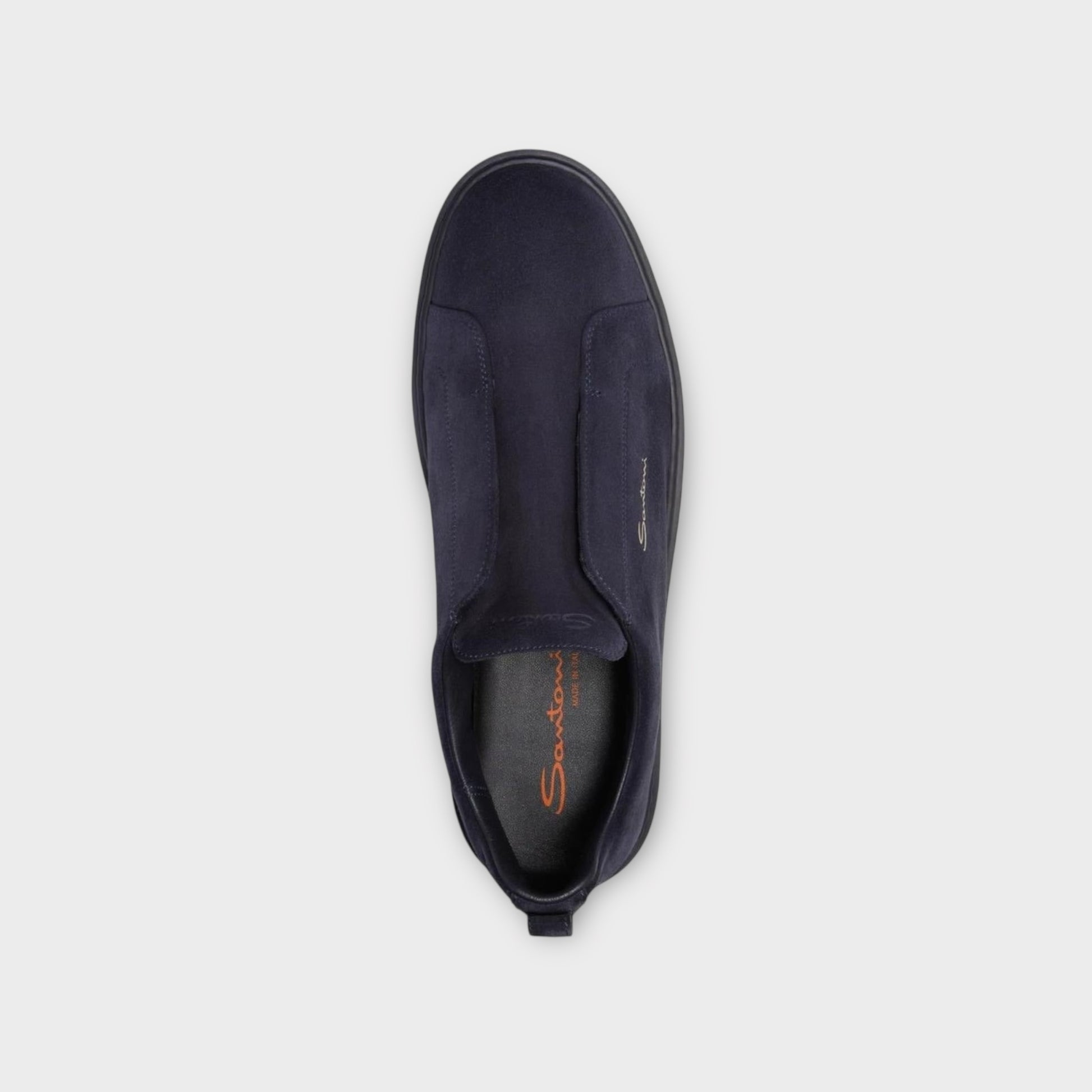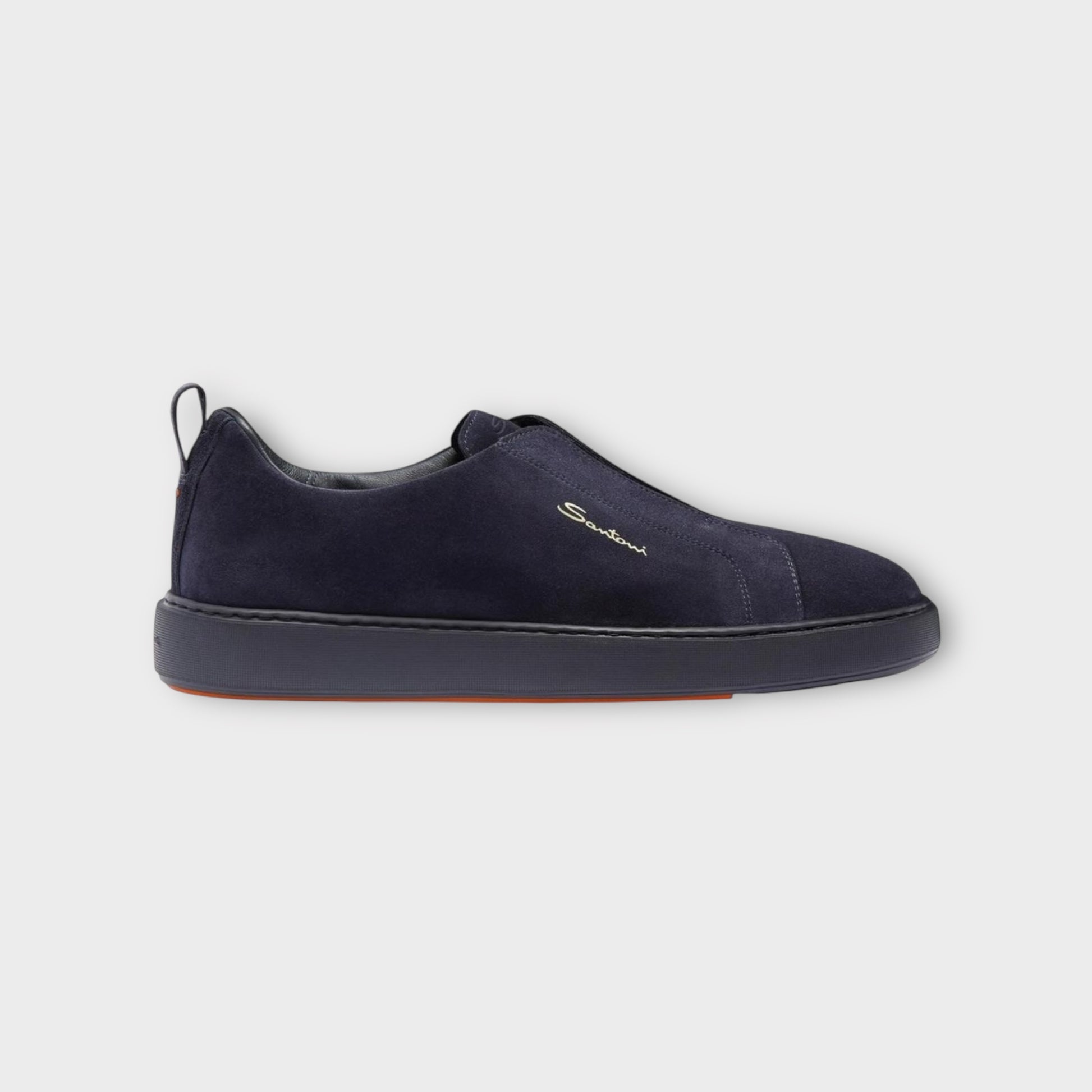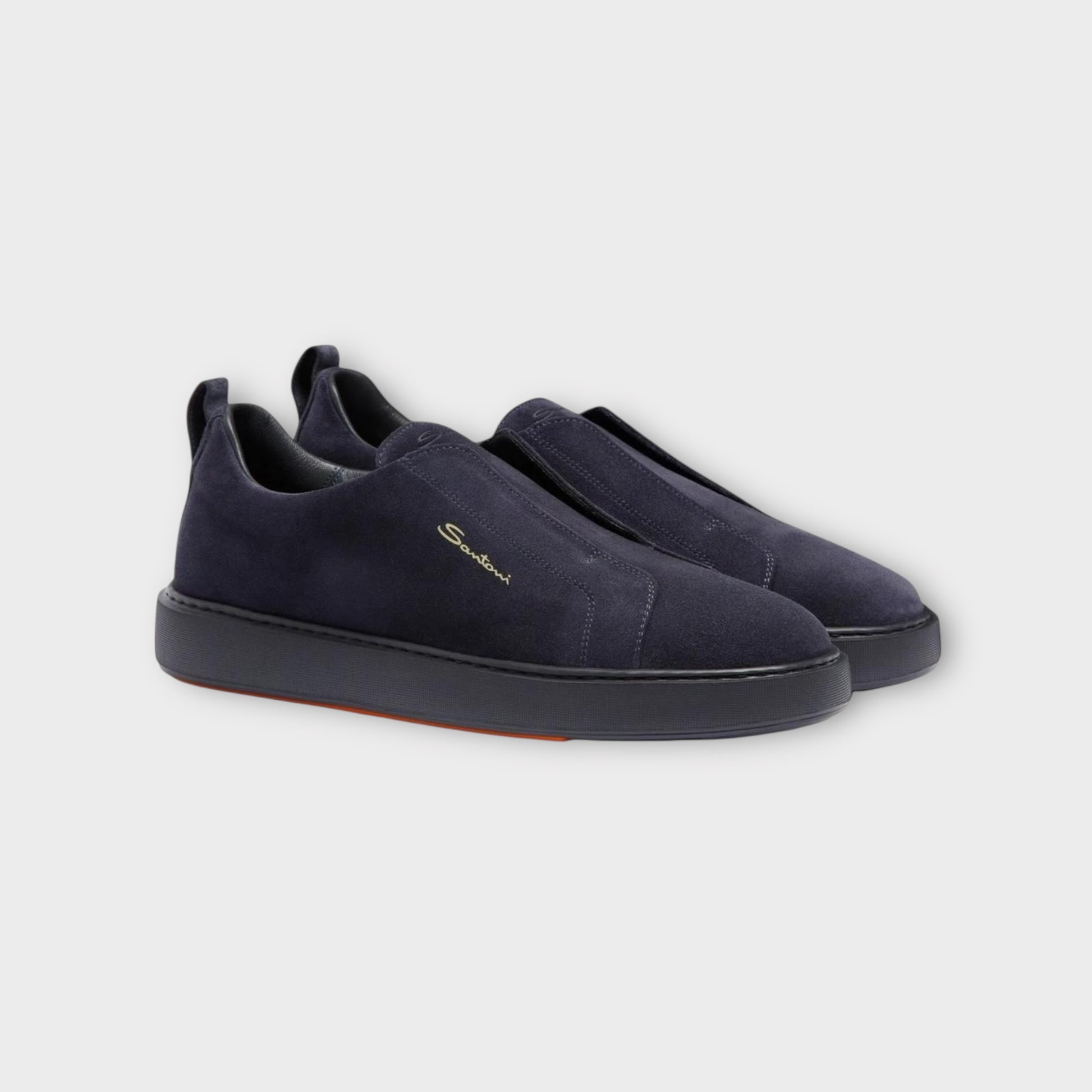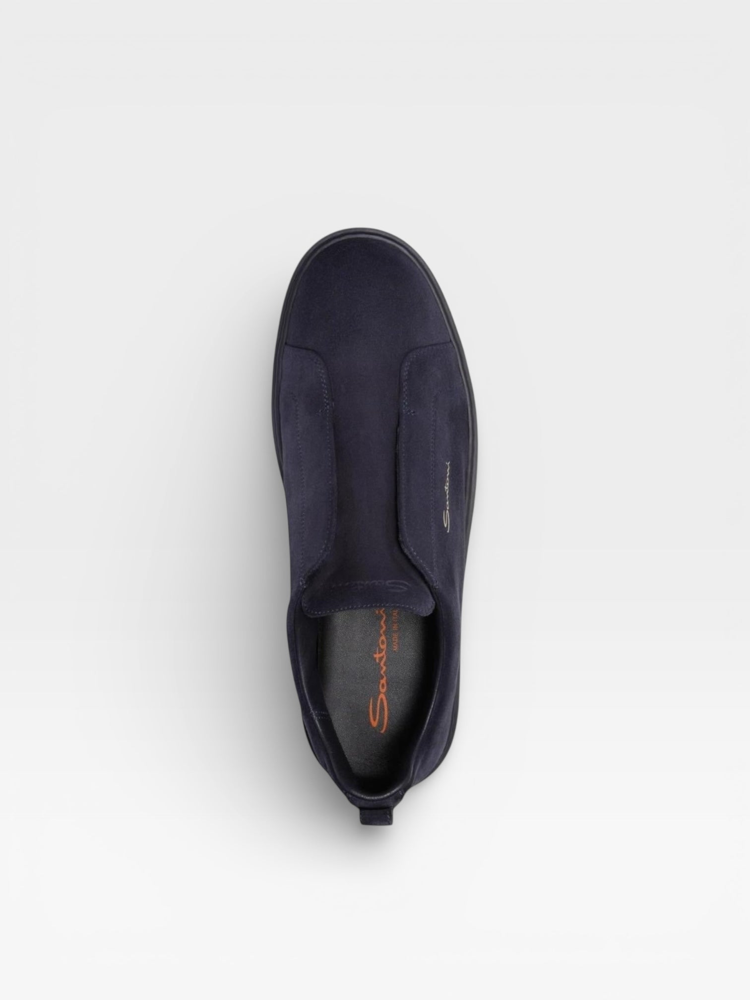 This men's suede slip-on sneaker features a tonal sole for a clean aesthetic that pairs with endless looks. Santoni's rich heritage shines through in every detail, from the logo print on the side to the decorative detail on the tread inspired by our iconic double-buckle shoe. A flexible rubber cupsole ensures maximum comfort from morning to night.