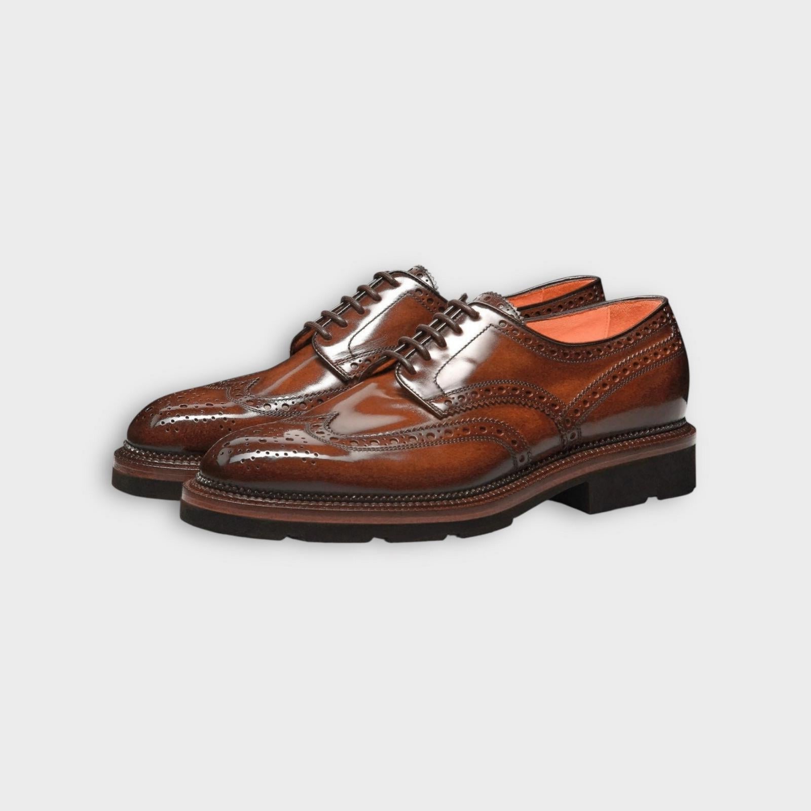 A contemporary take on a timeless icon. This Derby lace-up unites Santoni heritage with modern charm, crafted from fine leather with quintessential brogue detailing. But what truly sets this shoe apart from the rest is its robust yet lightweight construction, featuring a multi-layer sole with a leather welt and chunky rubber tread.