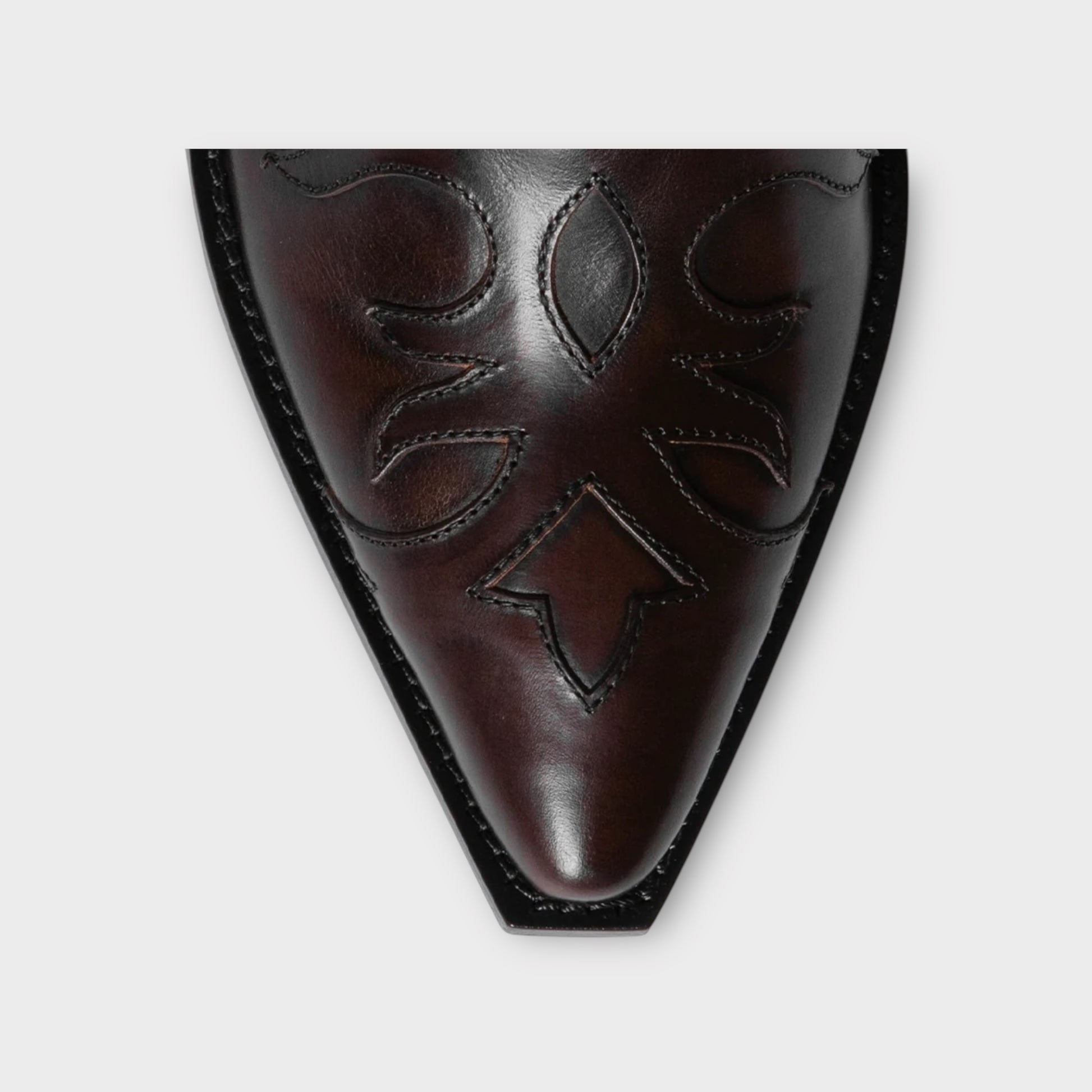 Iconic western boots made of classic calfskin. It is decorated with flame cutouts. The side elastics ensure real comfort. Bevelled heel and leather sole.