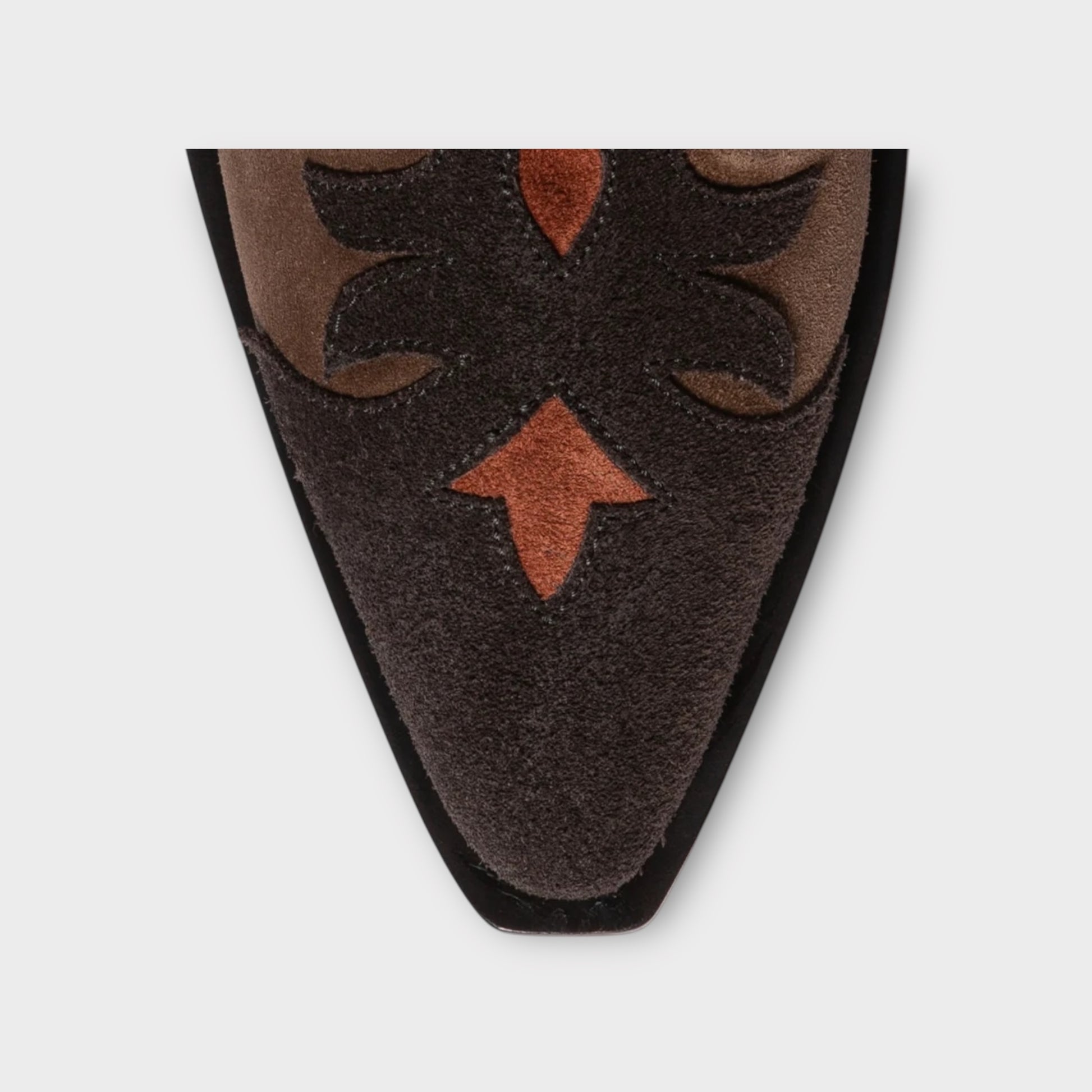 Iconic western boots made in very flexible velvet veal. It is decorated with flame cutouts. The lateral elastics ensure true comfort. Bevelled heel and leather sole.