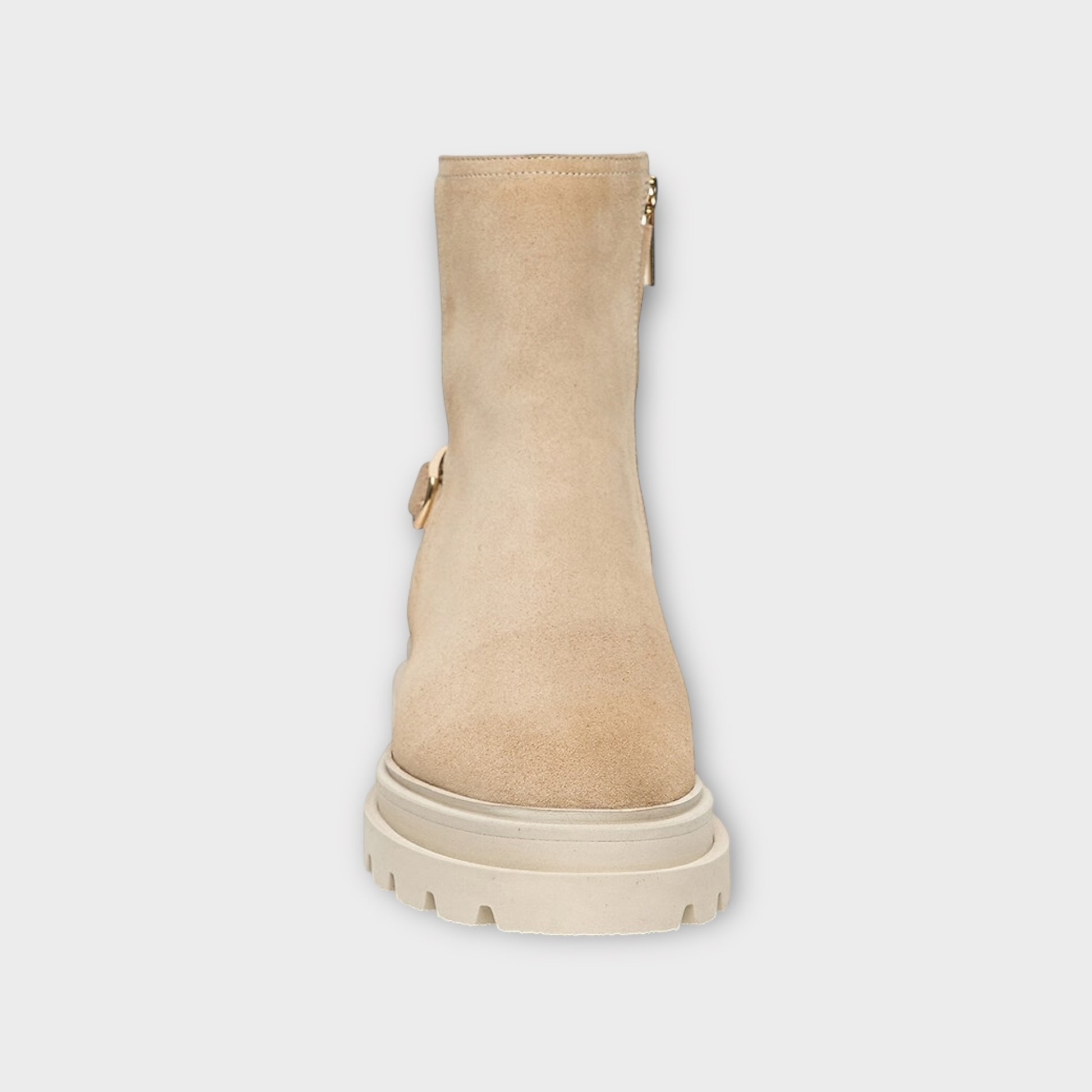 Chelsea Boots for women from Santoni in beige While this model with its high-quality suede leather quality is both visually and haptically convincing, the non-slip tread rubber sole sets fashionable accents. The gold-colored details harmoniously complete the look.
